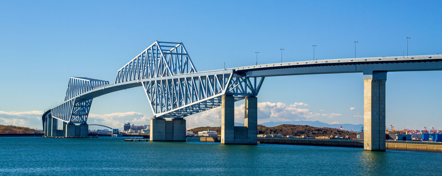 散骨ポイントの東京ゲートブリッジ沖は、左にディズニーランド、右に羽田空港。