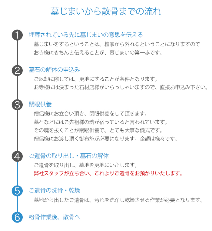 墓地からご遺骨を取り出す際に立ち合い、ご遺骨をお預かりいたします。